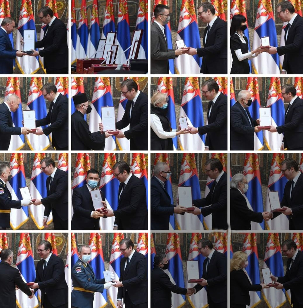 У склопу прославе Дана државности, председник Србије, Александар Вучић, уручио је данас признања појединцима, установама и удружењима за специјалне заслуге.