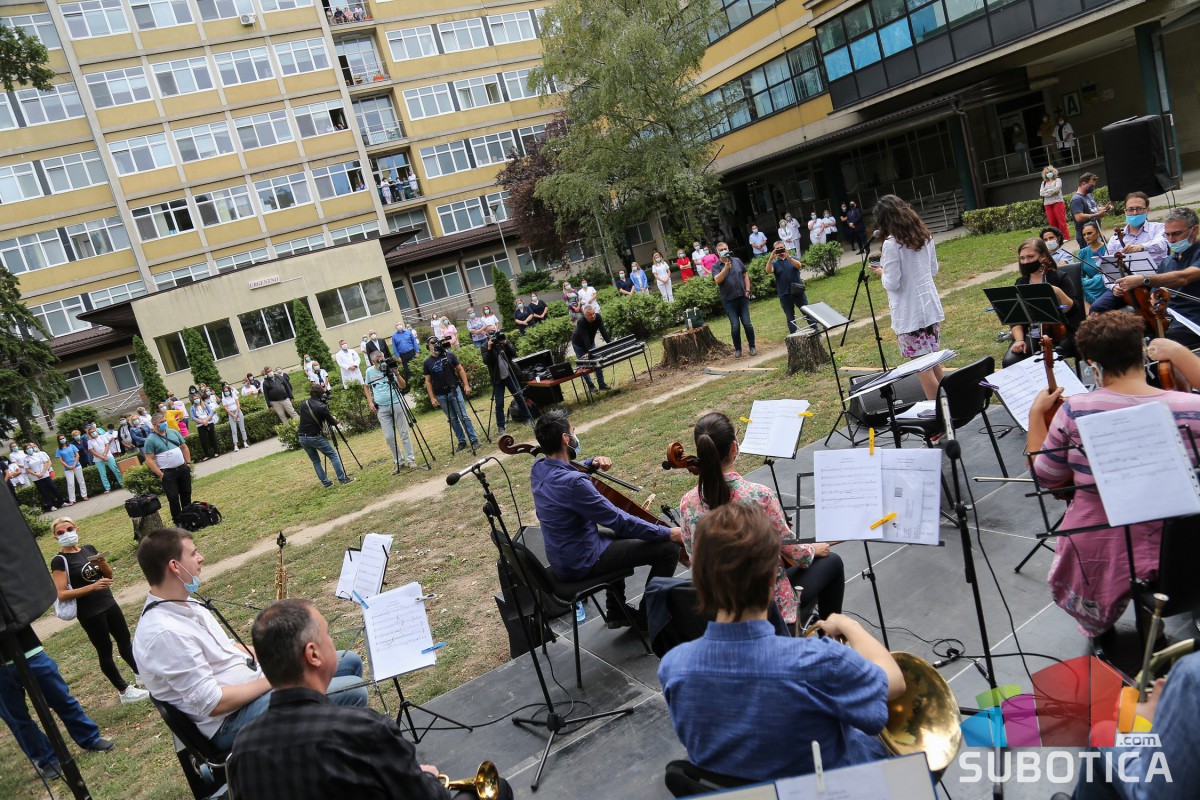 Суботички симфонијски оркестар одржао је концерт у дворишту Опште болнице Суботица, намењен здравственим радницима и пацијентима. Суботички музичари су на овај начин исказали поштовање свим медицинарима који се протеклих пола године боре са епидемијом вируса ковид-19.